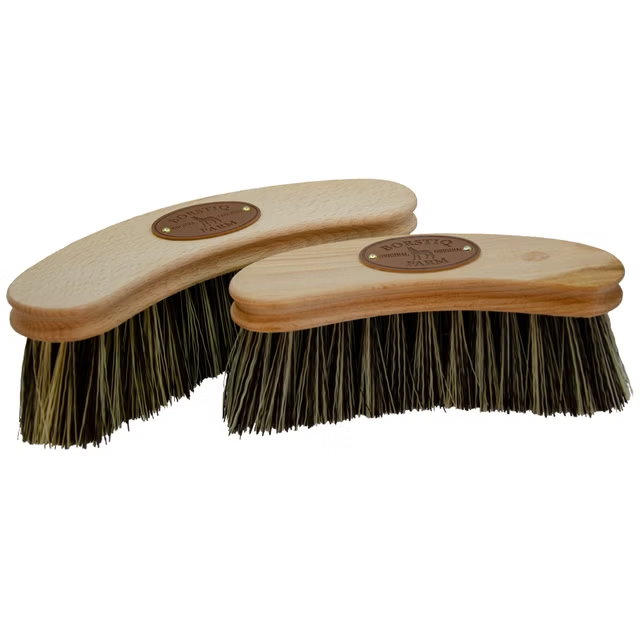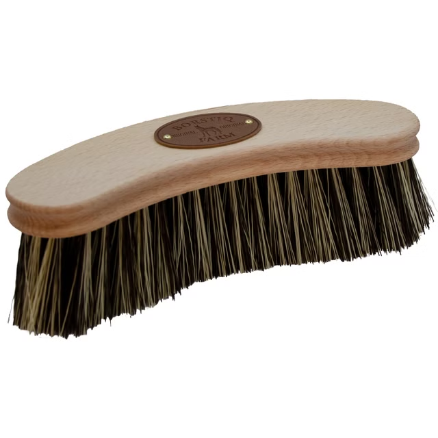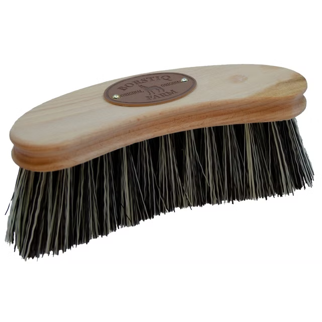 Medium stiv bust i syntetfiber som effektivt fjerner støv, skitt og flis fra hestens hårlag.