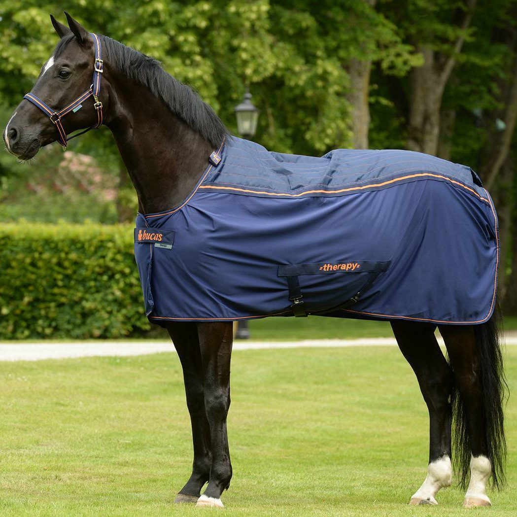 Bucas Therapy Cooler er et funksjonelt og terapeutisk dekken utviklet for å støtte hestens restitusjon på en skånsom og effektiv måte. Dekkenet benytter et avansert materiale med finmasket rustfritt stålnett som reflekterer kroppens naturlige magnetfelt. Dette bidrar til økt blodsirkulasjon og oksygentilførsel, som igjen kan redusere stivhet, hevelser og betennelser.
