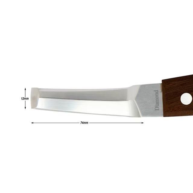 Diamond Hovkniv Dobbel-Egg er konstruert for effektiv og kontrollert trimming av såle og kråke (stråle). Den doble eggen gir full arbeidsfrihet i begge retninger, noe som reduserer behovet for å endre håndstilling underveis.