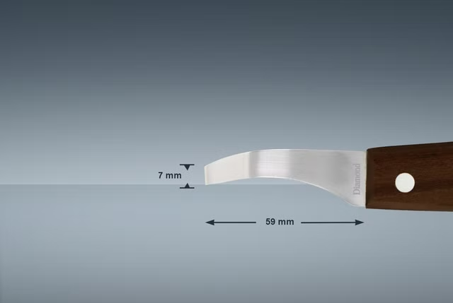 Diamond Loop Hovkniv er utviklet for presis trimming av såle og stråle. Loop-designet gjør at du kan arbeide i flere retninger uten å måtte justere grepet kontinuerlig – noe som gir bedre flyt og høyere presisjon i arbeidet.