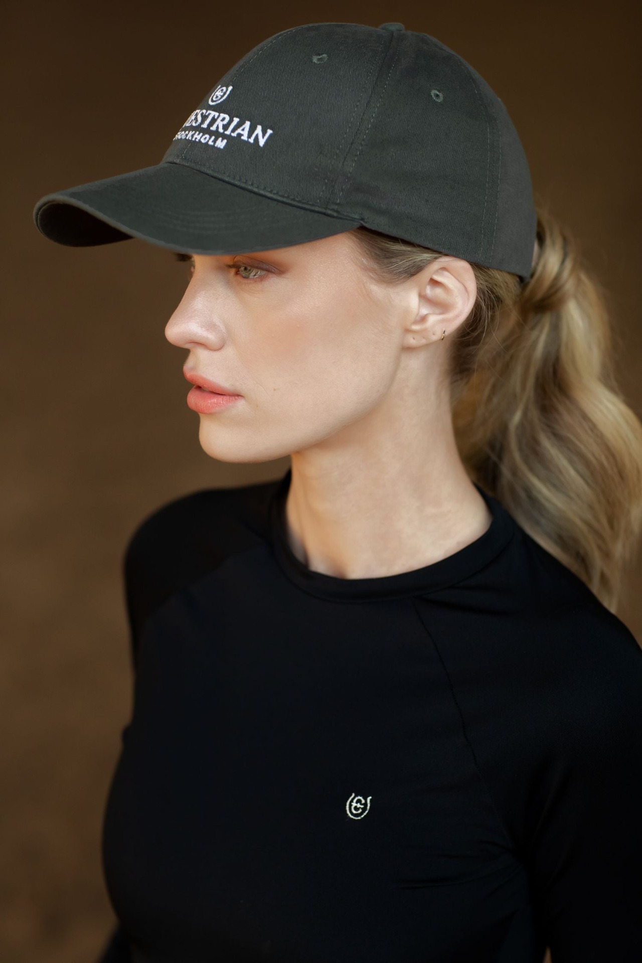 Den perfekte unisex-cap i elegant grønnfarge. Laget i 100 % bomull og designet med stilrent brodert Equestrian Stockholm-logo i hvitt på fronten.