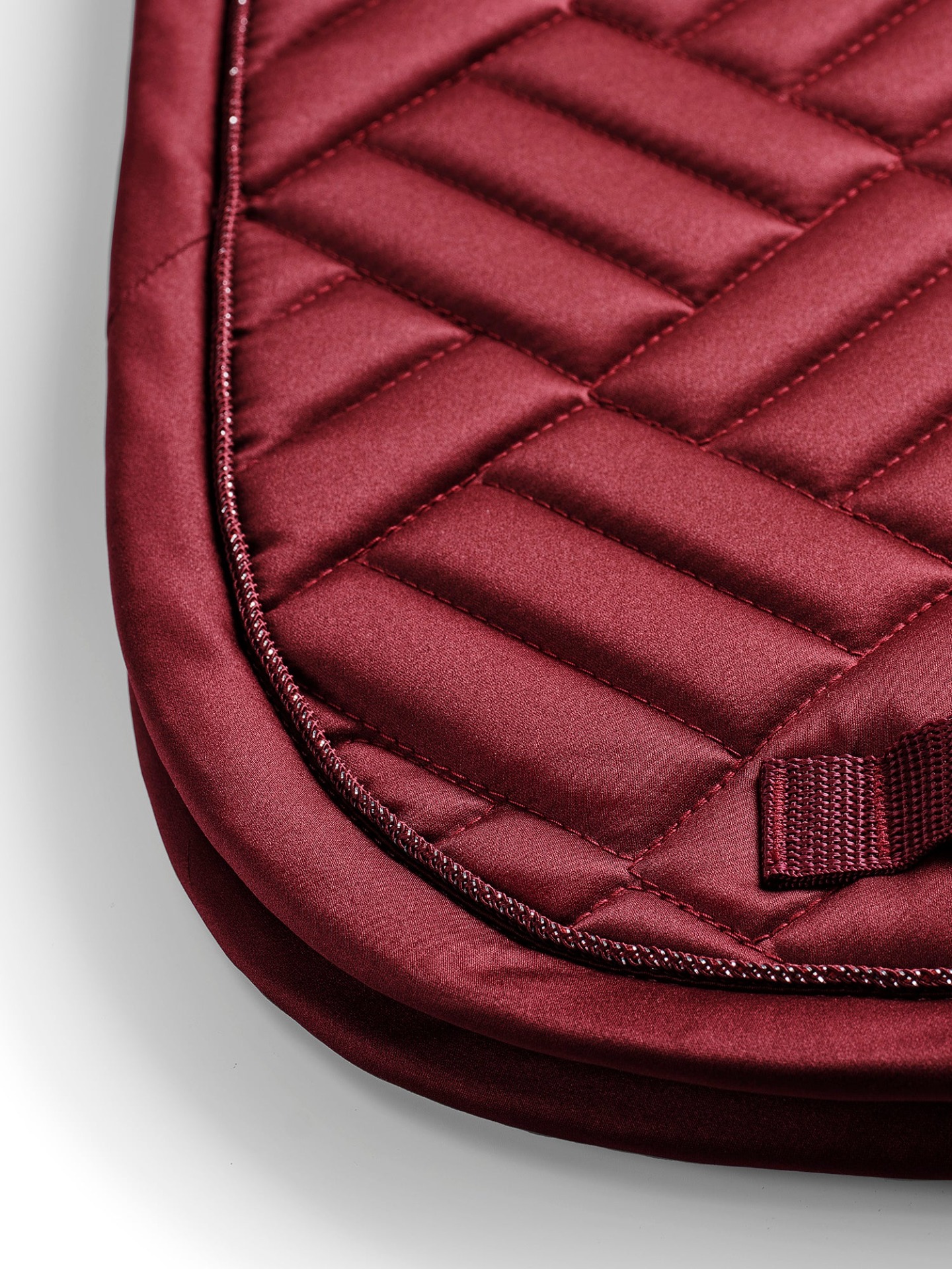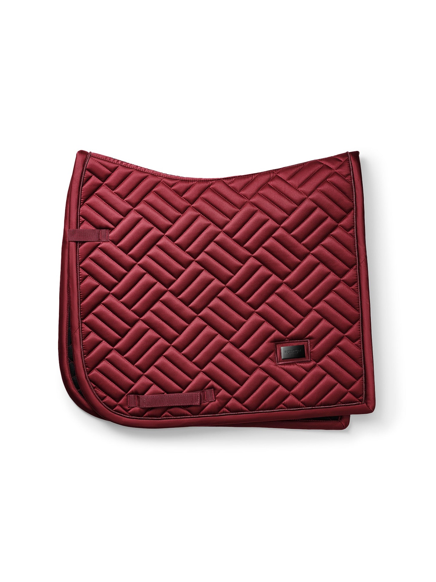 Elegant sjabrak med moderne quilting i bordeaux med sorte detaljer. Dekorert med Equestrian Stockholm-merke i sort metall.