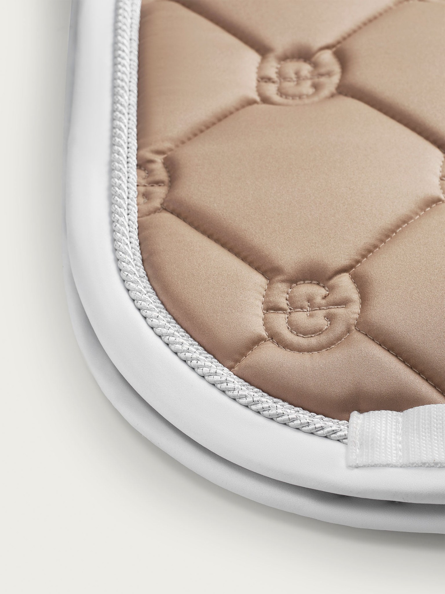 Elegant sjabrak i beige med sølvfargede detaljer, dekorert med Equestrian Stockholm-emblem i sølv. Materialet er behandlet med High IQ Cool Comfort, som gir sjabraken hurtigtørkende og fukttransporterende egenskaper. Dette bidrar til at hesten holder seg tørr og komfortabel over lengre tid. Styles perfekt sammen med andre produkter fra Sand-kolleksjonen for et helhetlig og stilrent uttrykk.