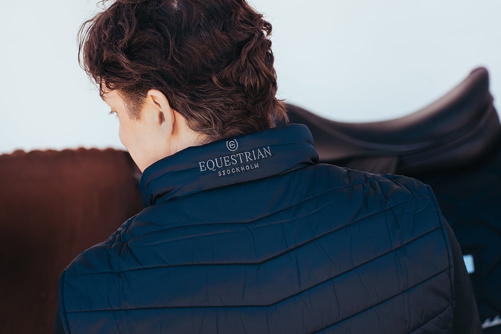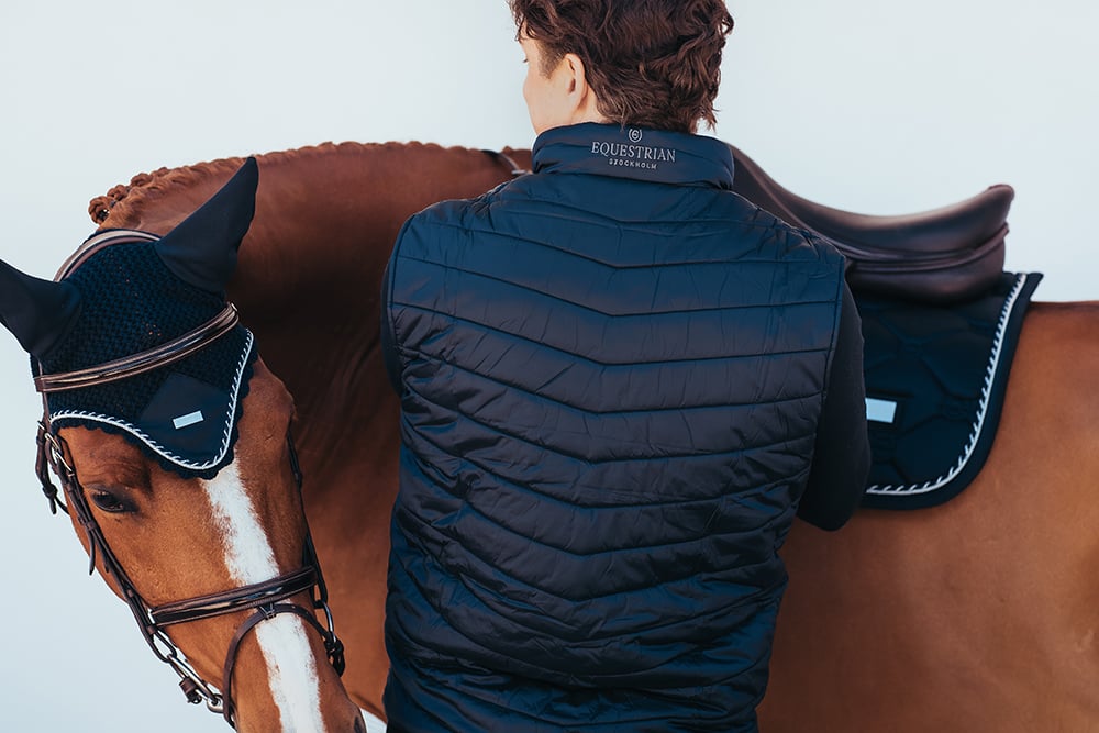 Den perfekte ridevesten kommer i et stilig marineblått design med sølvdetaljer. Den sporty vesten er både vind- og vanntett, samtidig som den er lett, pustende og komfortabel.