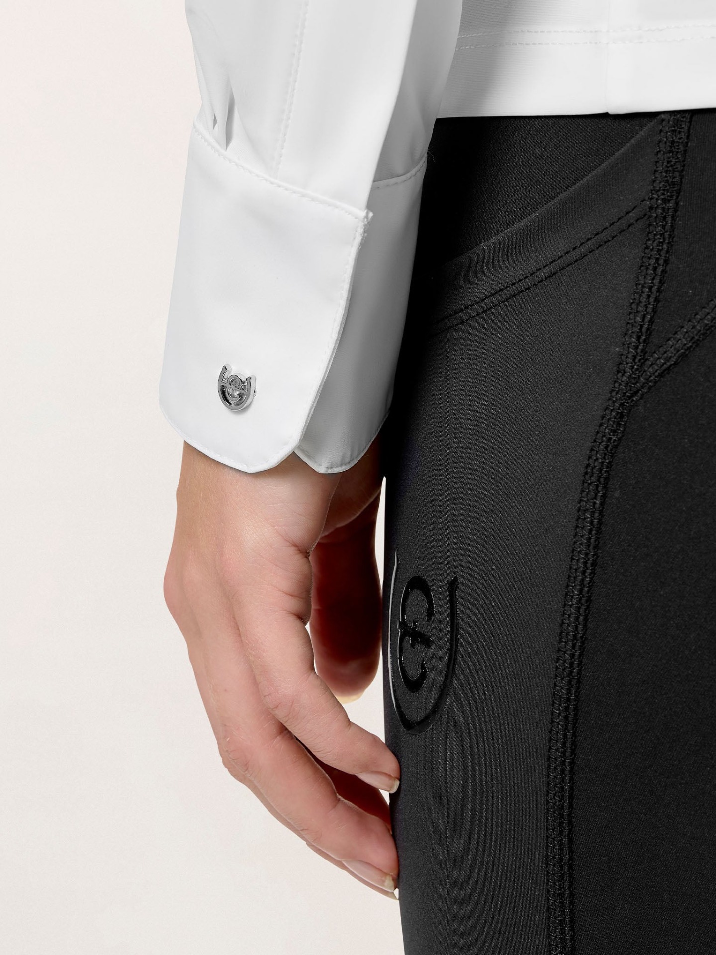 Nydelig skjorte fremstilt i et teknisk performance-materiale med kjølende følelse mot huden og forbedret pusteevne gjennom laserutskårne perforeringer, noe som sikrer høy komfort. Designet for den elegante rytteren, kombinerer det funksjonalitet med et tidløst og sofistikert uttrykk.