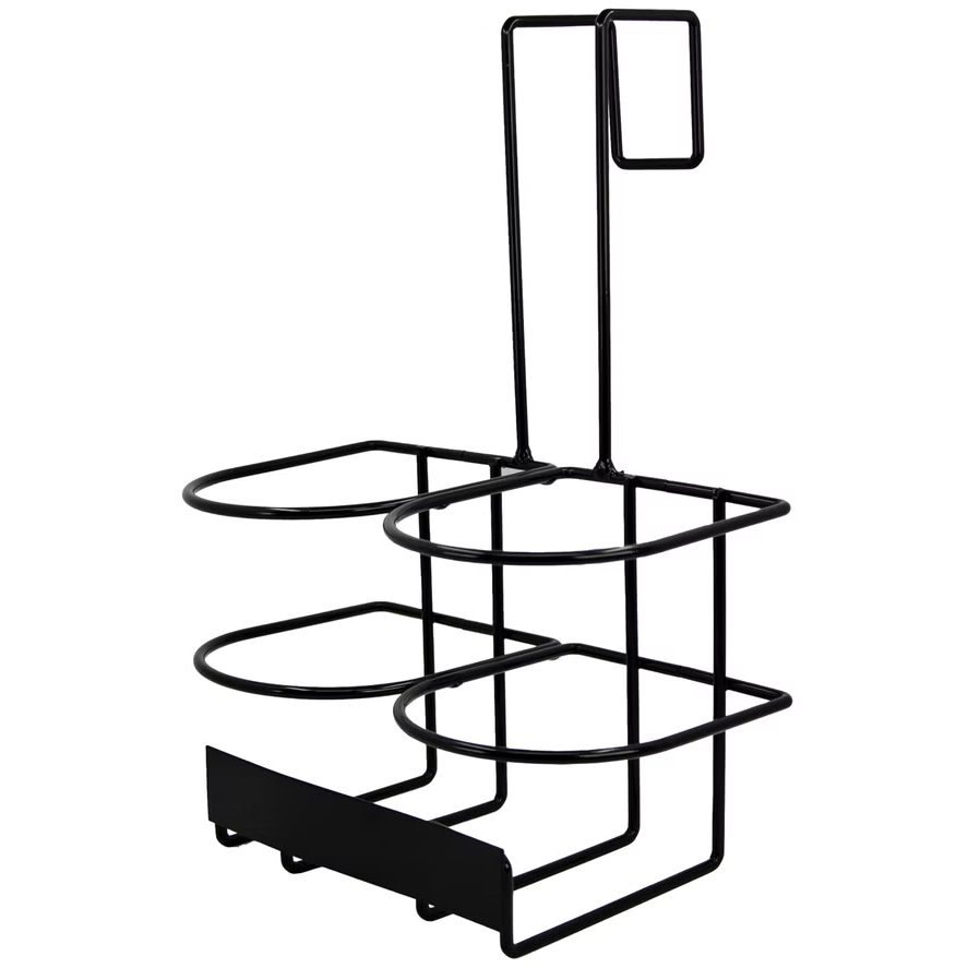 Praktisk flaskeholder.Kan henges over boksdøren eller andre egnende steder.Kjekk å ha i stallen, på salrommet eller på reise.Holder 2 store pleiemiddelflasker, for eksempel fluespray og showshine.Laget i stål, lakkert i svart.