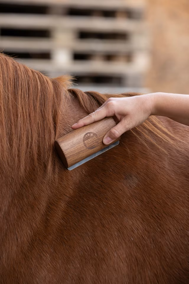 Effektiv røytebørste med metalltenner, passer også for hester med veldig tykk pels.