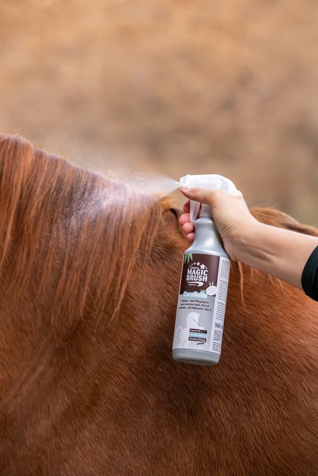 ManeCare Premium CocoBello pels- og manspray reparerer skadet pels, tilfører fuktighet og gir en silkemyk glans.
