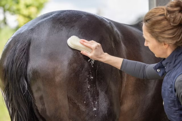 Fungerer som 2 i 1, da baksiden av børsten kan brukes som svetteskrape og røytebørste.