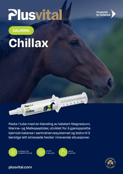 Chillax fra PlusVital er en pasta som er utviklet for berolige lett stressede hester i krevende situasjoner.