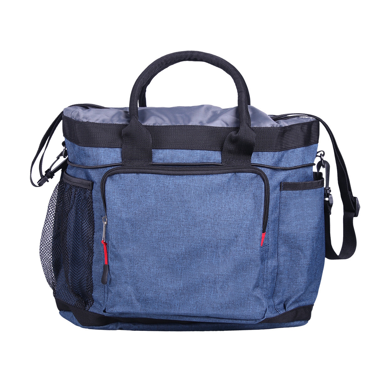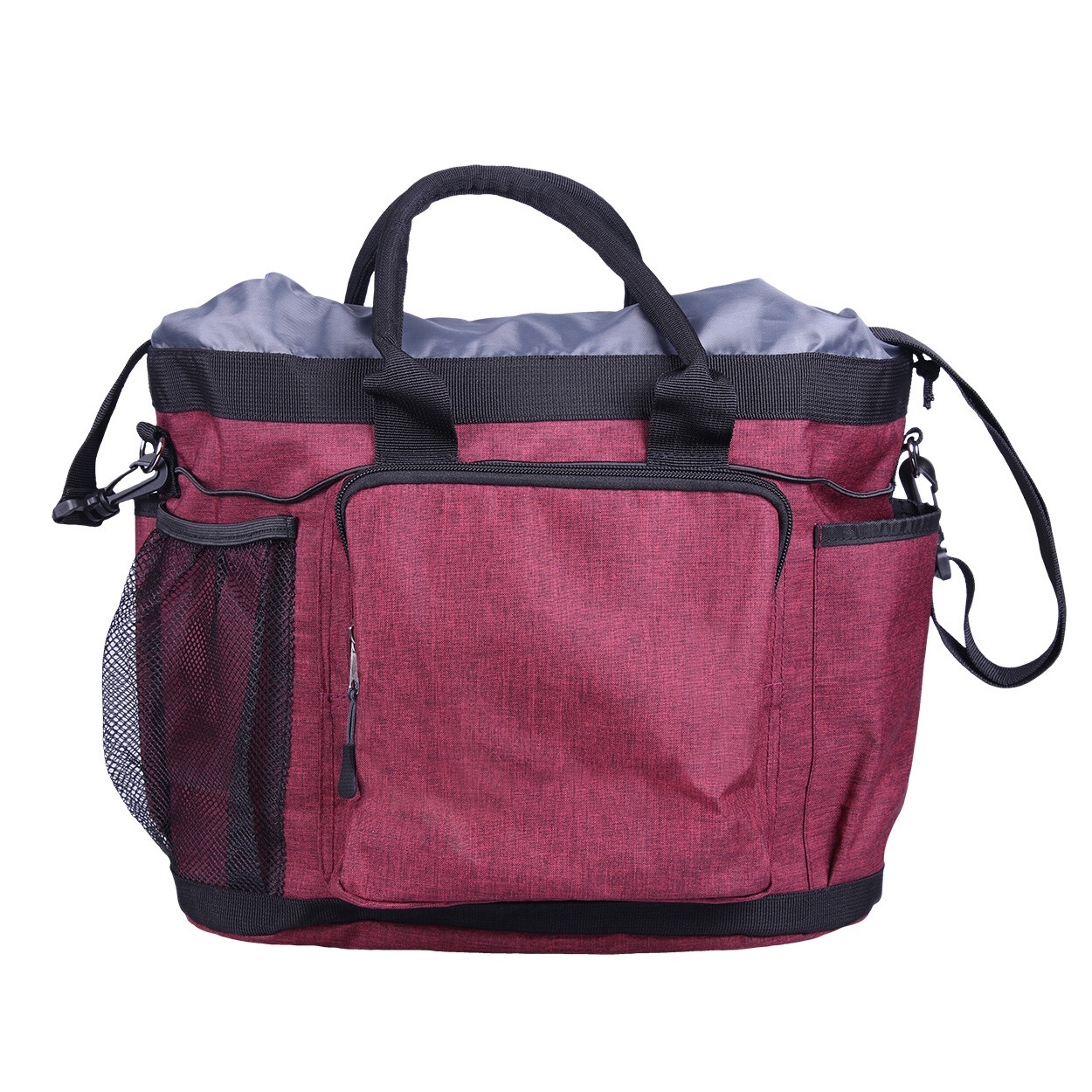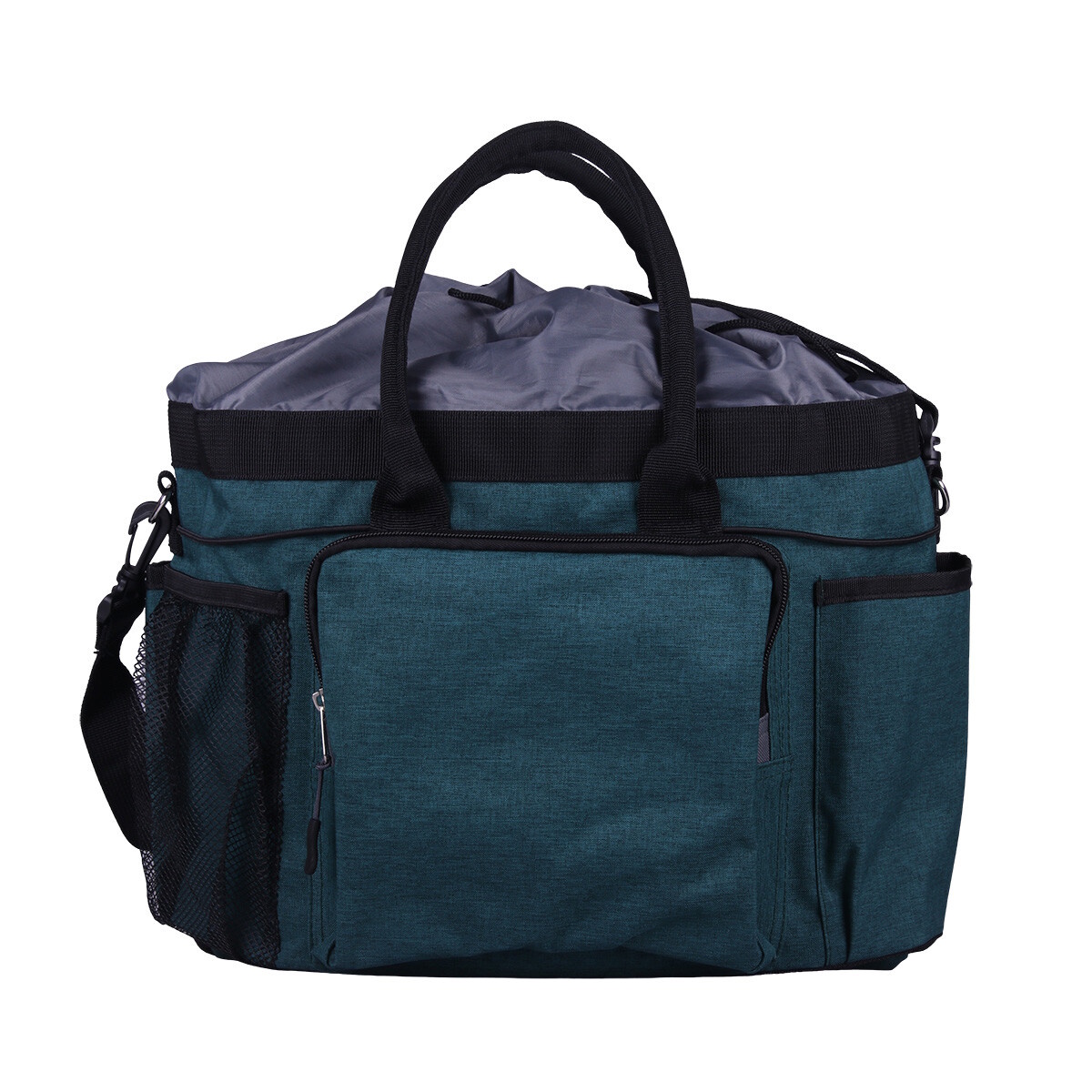 Vesken er laget i slitesterkt, vannavvisende materiale og tåler daglig bruk i stallmiljø. Den kan bæres i håndtakene eller med den avtakbare skulderstroppen, som gjør den enkel å ta med både hjemme og på stevne.
