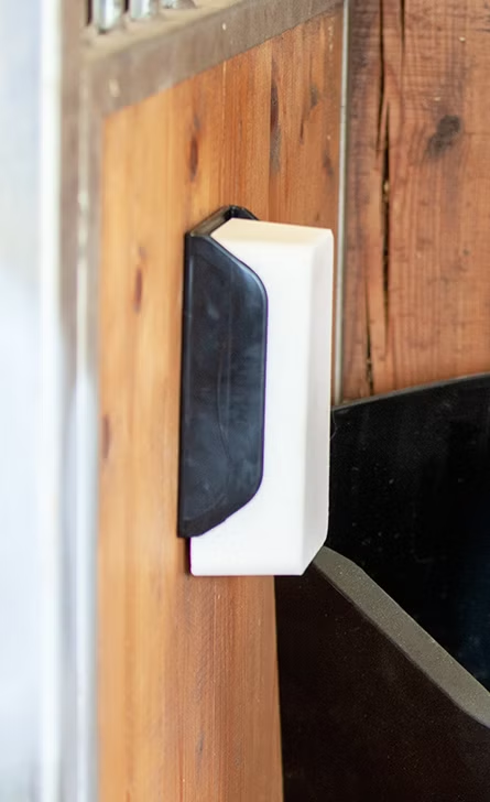 Saltsteinholder fra V-Plast.Laget i solid plast.4 hull til skruer.Kan settes opp i boksen, utegangshuset eller på gjerdet.Passer til rektangulær 2 kg. saltstein.