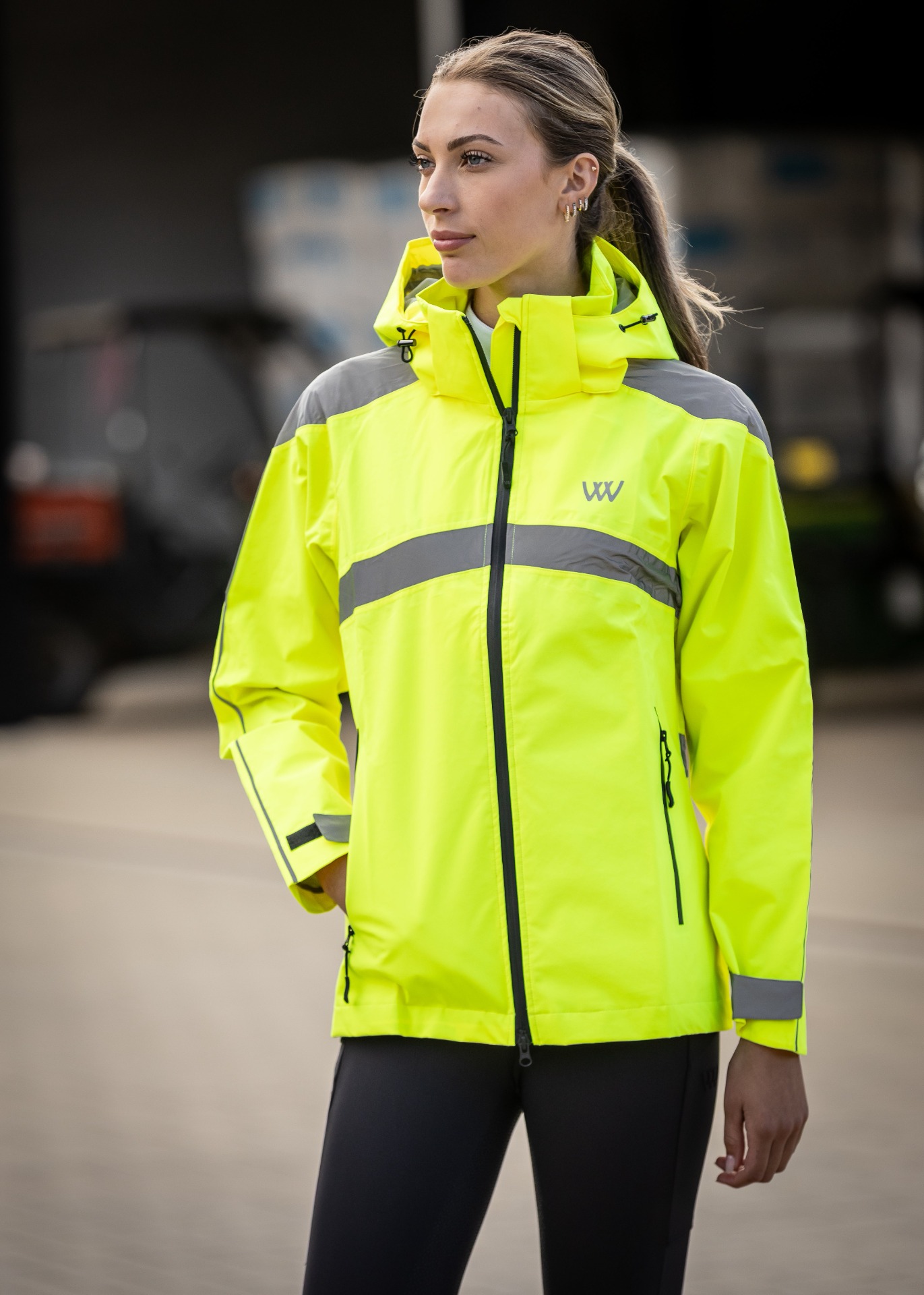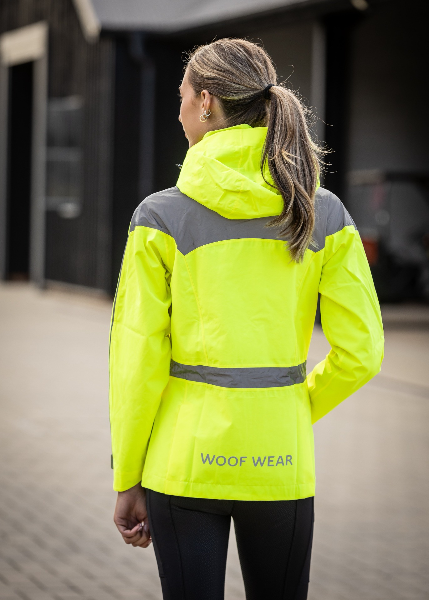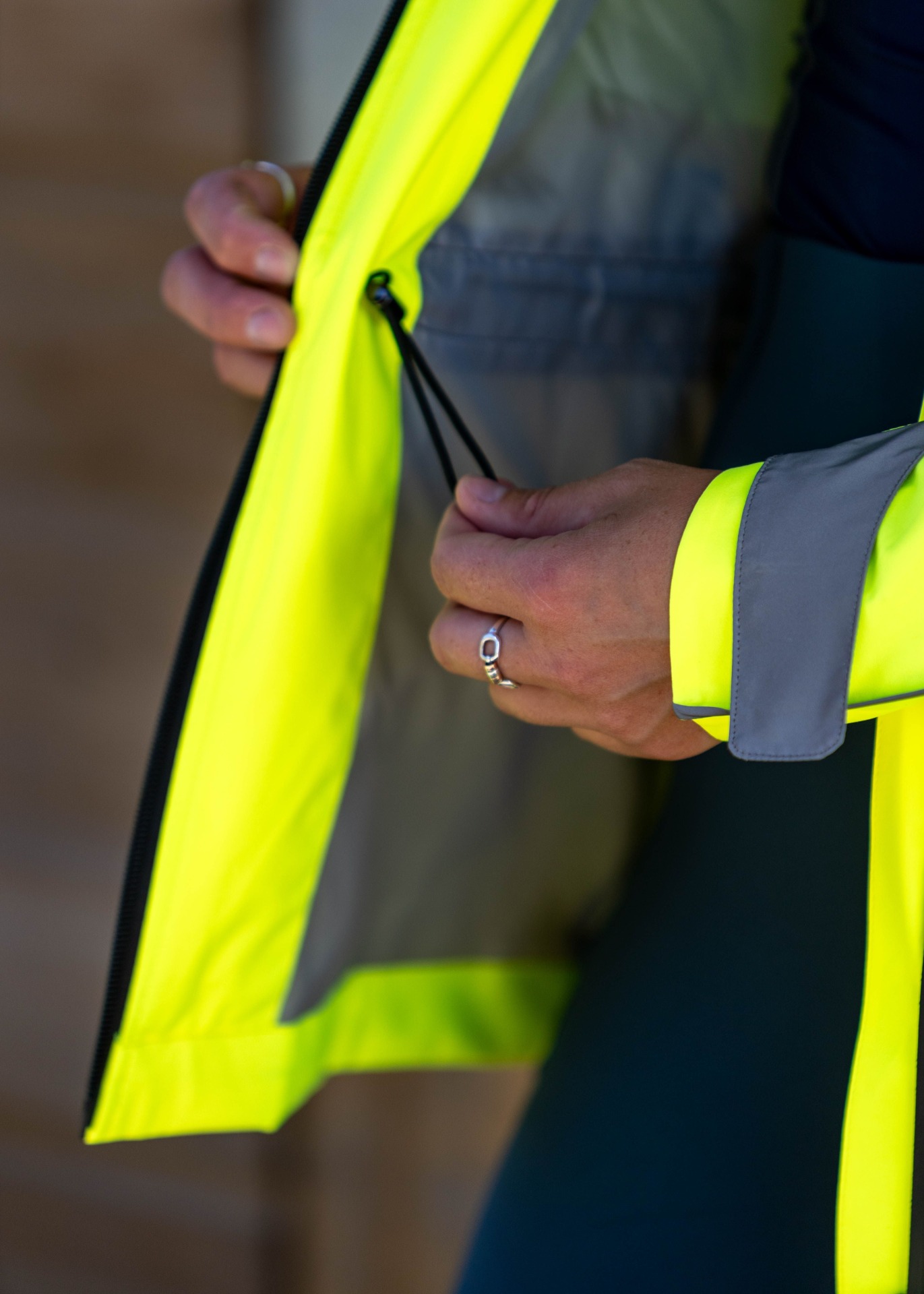 All Season Waterproof Jacket i Hi Vis Yellow er designet for ryttere som ønsker både optimal værbeskyttelse og maksimal synlighet. Jakken holder deg tørr og komfortabel med vanntett og pustende teknisk materiale, mens den sterke gule fargen og reflekterende detaljer sørger for at du blir sett – både dag og natt. Med gjennomtenkte detaljer som ride-splitt bak, skjult midjejustering og en justerbar hette som kan pakkes bort, kombinerer denne jakken sikkerhet, komfort og funksjonalitet på best mulig måte.